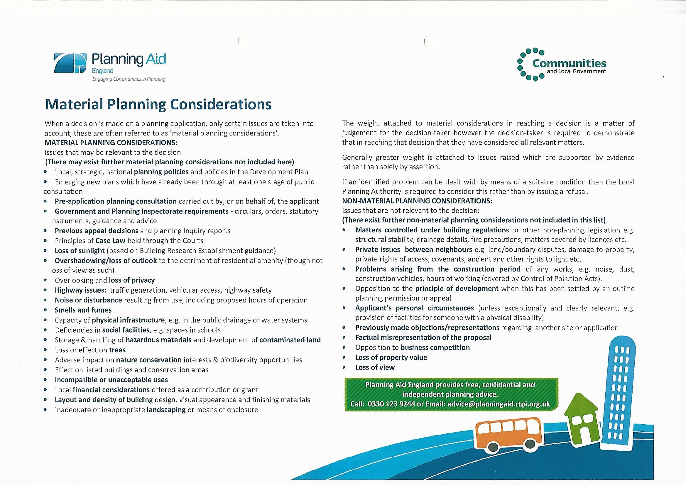 Material Planning Considerations (produced by GAPTC)